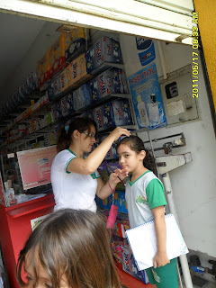 A turminha do 2º ano da sala da tia Evinha, realizou uma atividade para despertar a consciência dos alunos em relação a atividade corporal, levando os mesmos para verificarem o peso e a altura em algumas farmácias da cidade.
